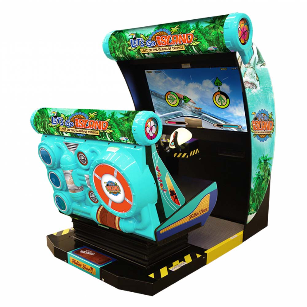 An island adventure like you'd only find in your wildest dreams! Let's Go Island is a co-op 4D motion simulator arcade machine game that takes players through a wild adventure in the South Pacific Islands. As a "normal" island tour begins, you quickly end up in frantic trouble with pirates and wild creatures from your dreams.